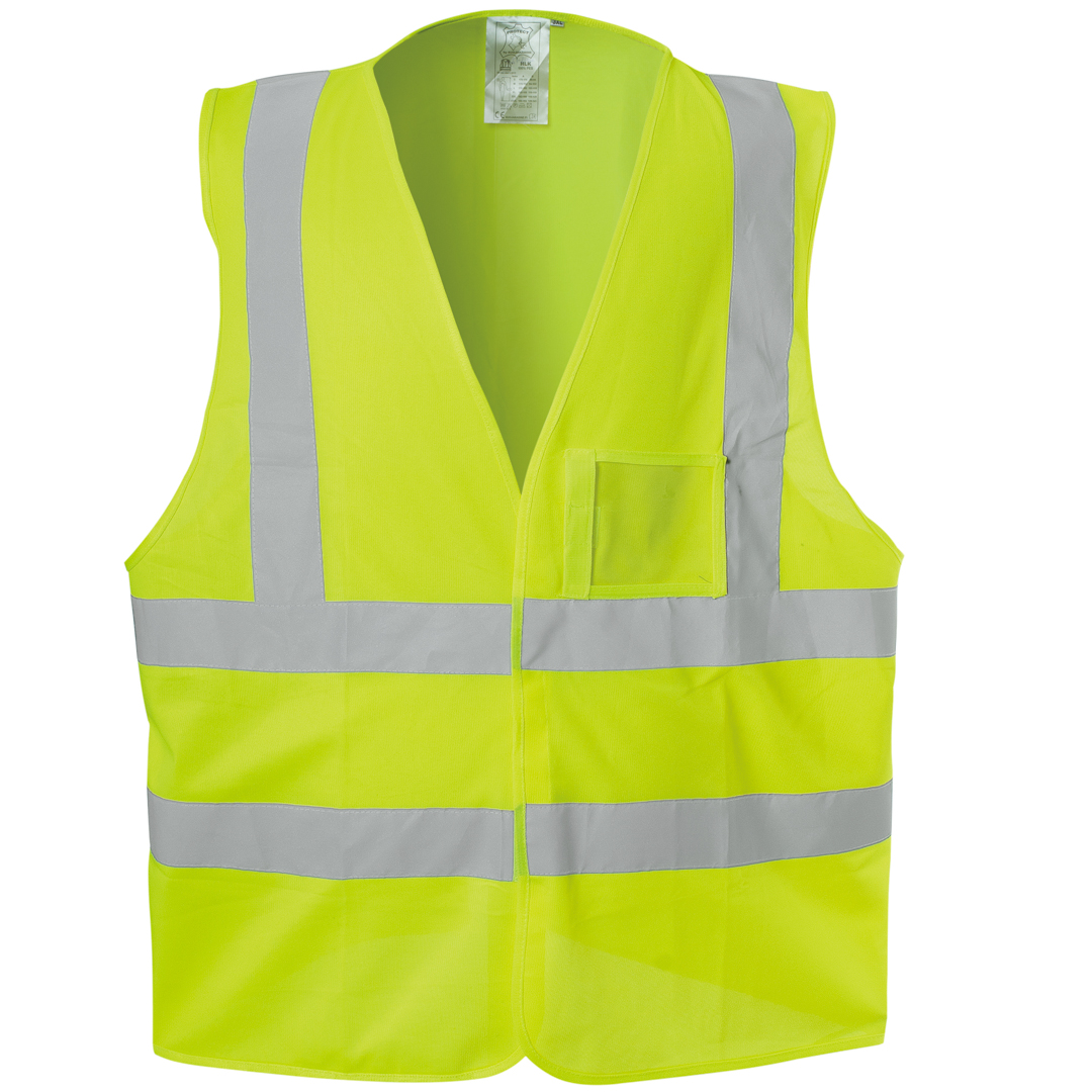 EN 20471 luokiteltu keltainen huomioliivi, luokka 2, kunnon pitkä kiinnitystarra edessä takaa liivin hyvän paikallaolon ja turvallisuuden, materiaalina 100% polyester. Henkilökorttitasku. EN 20471 lk 2. Koot: S-XXXL.