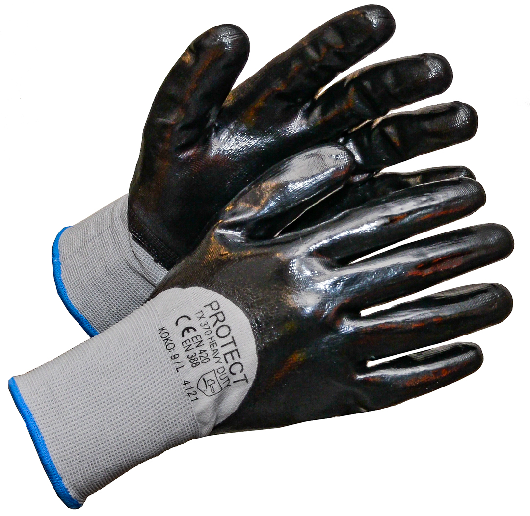 Nitriilillä 3/4 pinnoitettu saumaton nylonsormikas, kestävyyttä ja suojaa vaativiin tilanteisiin. Nitriili suojaa hyvin kosteudelta ja öljyiltä. 3/4 dipattu malli tarjoaa hyvän suojan myös kämmenen selkäpuolelle. Kulutusta kestävä ja erinomaisesti käteen muotoutuva malli, erittäin hyvä sormituntuma ja pito, soveltuu myös tarkkuutta vaativiin tehtäviin. Hengittävä selkäosa ja saumaton rakenne parantavat käyttömukavuutta. Käsineen voi tarvittaessa pestä. Silikonivapaa. Koot: 9-11. 12 paria nipussa, 240 paria laatikossa.