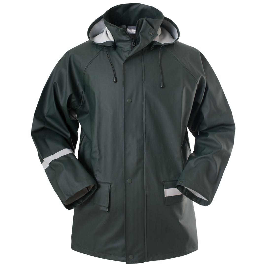 Sadeasu (hupullinen takki ja vyötäröhousut). Materiaali PU/PVC – pinnoitettua polyesterikangasta. Takissa painonapitus etusuojalistassa ja vetoketju sen alla, housuissa kuminauhavyötärö kiristysnarulla, saumat neulottu ja kuumasaumattu. Puserossa kaksi isoa läpällistä sivutaskua ja irrotettavassa hupussa narukiristys. Hihan- ja lahkeensuissa nepparisäätö ja takin helmassa säädettävä kiristys. Turvallisuutta lisäävät heijastimet edessä ja takana. Piilotettava D-lenkki. Väri: tummanvihreä. Koot: XS-XXXL.