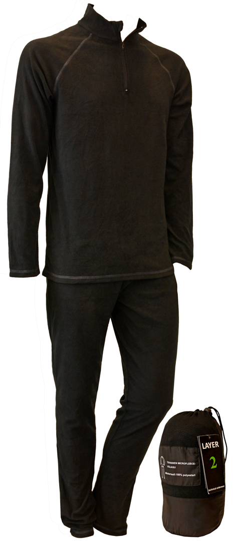 Tekninen microfleece-väliasu. Mukava ja erittäin lämmin, siirtää tehokkaasti kosteutta ulompiin kerroksiin. Materiaali joustavaa teknistä polyesteriä. Sopii erittäin hyvin yhteen teknisen alusasun AA1 kanssa. Pakattu kätevään ja uudelleen käytettävään säilytys/kuljetus-pussiin. Väri: musta. Materiaali: 100% polyesteri. Koot: XS – 3XL.