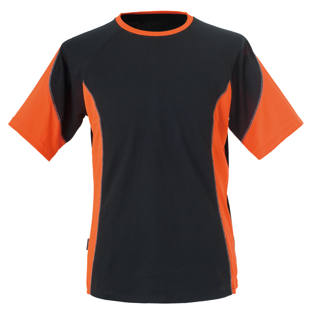 Tekninen t-paita niin työhön kuin vapaa-aikaankin. Näyttävä ja toimiva design. Väri: musta/oranssi, hopeiset kontrastitikkaukset. Materiaali: tekninen 100% polyesteri, joka on mukava, joustava ja viileä iholle. Koot: XS-XXXL.
