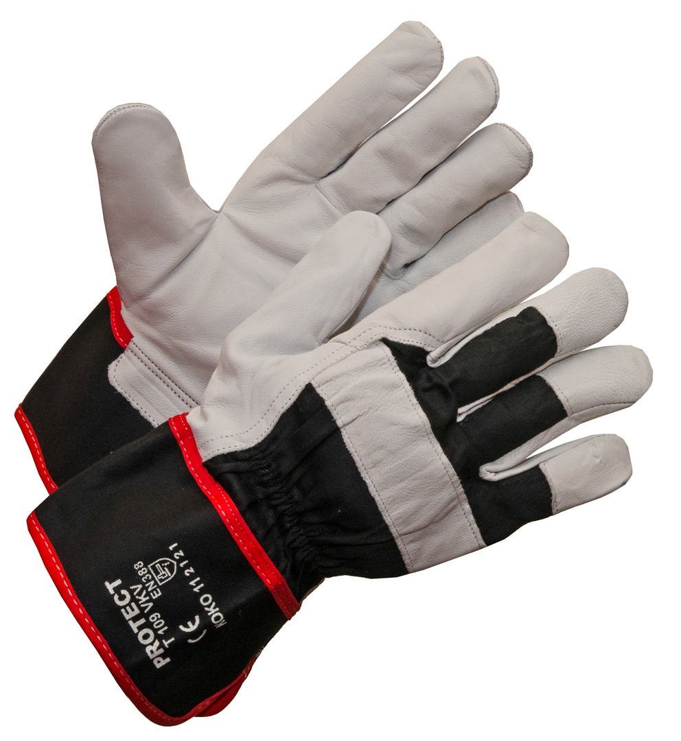 Työsormikas, kestävä naudannappakämmen, puuvillakangasselkä, lämmin fleecevuori. Koko: 11. 12 paria nipussa, 120 paria laatikossa.